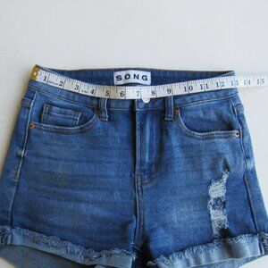 S.O.N.G. Women's Distressed Cuffed Frayed Hem Blue Denim Jeans Shorts Size 1/25