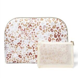 SONIA KASHUK Large Dome Case Makeup Bags (2 Pieces) White Cheetah NWT!