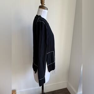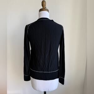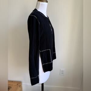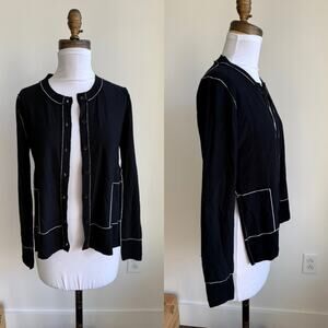 SONIA RYKIEL BLACK WOOL CARDIGAN WHITE TRIM BUTTON DOWN SIDE SLIT XS KNIT