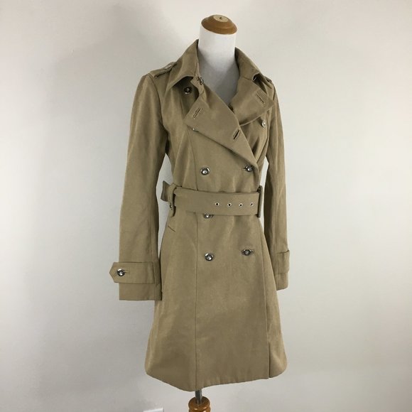 SONIA RYKIEL Beige/Brown Cashmere Blend Long Sleeve Belted Trench Coat Jacket