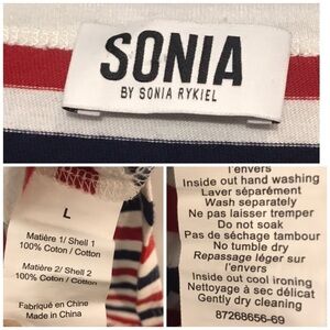 Sonia Rykiel SAIL AWAY nautical dress featuring striped design print & eyelet flutter short sleeves. Elastic stretch waist & round shirttail hem with side split.