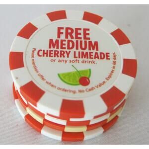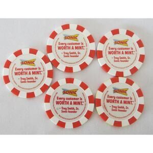 SONIC DRIVE IN 5 Poker Chips FREE MEDIUM CHERRY LIMEADE Mint Collectible Toy