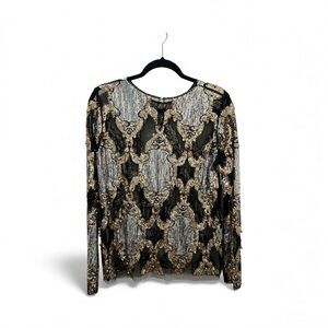 SONJA MORGAN Housewives Sheer Hand Beaded Embroidered Long Sleeve Top