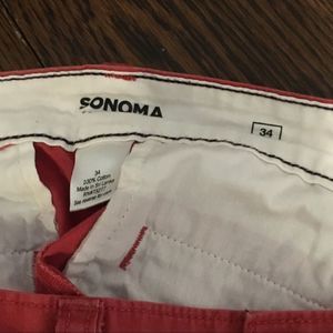 SONOMA Mens Muted Red Flat Front Chino Shorts Sz 34