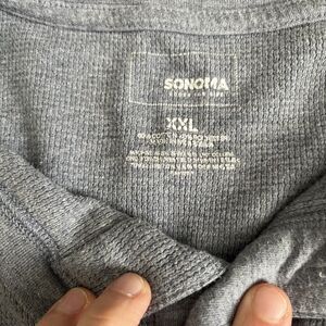 SONOMA Mens Waffle Thermal Henley Gray Long Sleeve T-SHIRT Size XXL