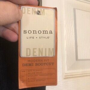 Size 6 Short new with tags Sonoma Modern Fit Demi Bootcut dark wash denim blue jeans. Sits slightly below waist, straight through the hip and thigh, slight bootcut.