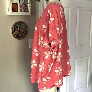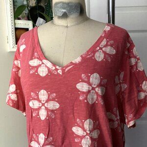 SONOMA Pink CORAL Floral Classic V-Neck soft T-Shirt *X-LARGE*