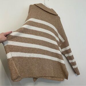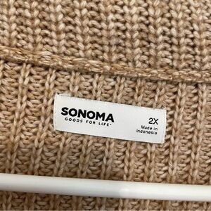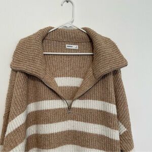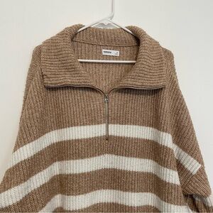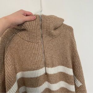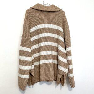 SONOMA Plus Size Quarter Zip Tunic Sweater Tan Brown White Striped 1/4 Zip Fall