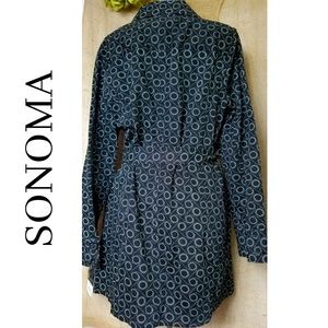 ⛾ NWT CUTE SONOMA BLACK & CREAM PATTERNED FASHION TRENCH. 100% COTTON. MACHINE WASHABLE. UNLINED WITH POCKETS & TIE BELT. EXTRA BUTTONS INCLUDED.