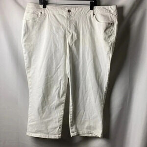 SONOMA WO SIZE 20W WHITE MID-RISE CAPRI PANTS POCKETS COTTON POLY SPANDEX BLEND GOOD CLEAN CONDITION ZIP BUTTON FRONT LENGTH MEASURES APPROX 32” FROM WAIST TO HEM INSEAM MEASURES APPROX 22” WAIST MEASURES APPROX 23” FROM SODE TO SIDE