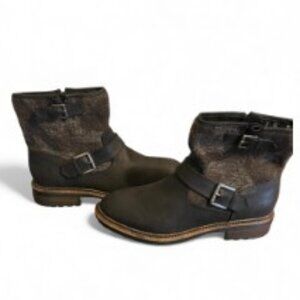 SONOMA WOMEN'S CECELIA BLACK BUCKLE INNER SIDE ZIP ANKLE BOOT SIZE 10 MED