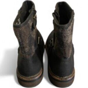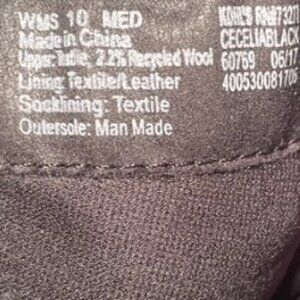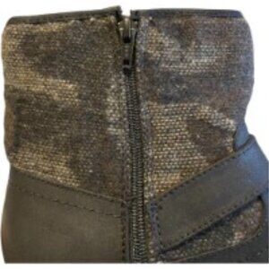 Color: Black faux leather/ Fabric upper: Muted chocolate brown, black, charcoal and a mix of lighter muted grey tones for contrast (see pic)
