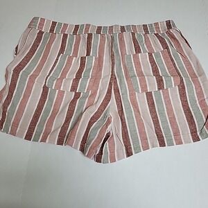 SONOMA Womens 1X STRIPED MID-RISE RELAXED LINEN BLEND SHORTS WAISTBAND POCKETS