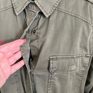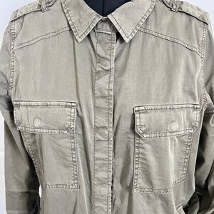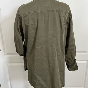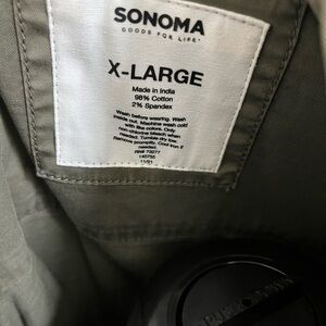 Sonoma. Snap closure. Pockets. Rounded hem. Olive green.