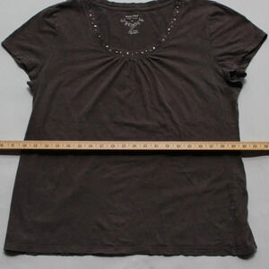 SONOMA life + style Short Sleeve Top Size XL 100% Cotton Ruched detail Med Brown Approx. 36" Chest, 24" Length