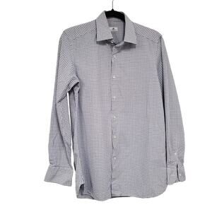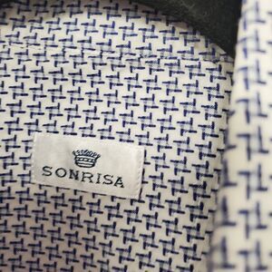 SONRISA Button Up Shirt Mens 15.5 Blue Geometric Long Sleeve Business Office