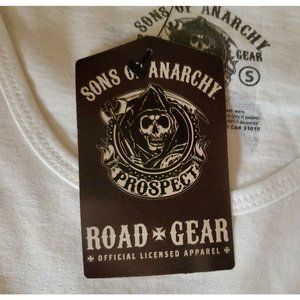 Brand new with tags officially licensed Sons of Anarchy SAMCRO promotional white tank top by Road Gear Official Licensed Apparel, 2010/2011.