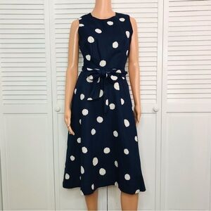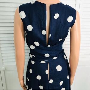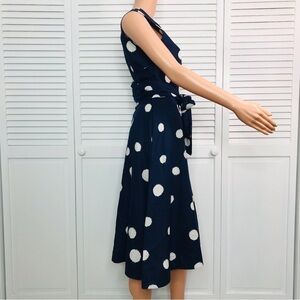 SOODEE Navy Linen Polka Dots Waist Wrap Around Dress Size Medium