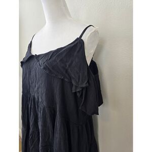 boho black mini dress, cold shoulder dress, tiered ruffle dress, flowy summer dress, casual off-shoulder dress, Gen Z fashion, Y2K style, SO brand dress, XXL black dress, plus size mini dress, festival dress, cottagecore, soft girl aesthetic