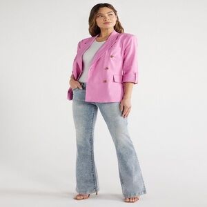 Elevate your style with this chic pink double-breasted blazer. Perfect for any occasion, this jacket adds a pop of color to your wardrobe.
