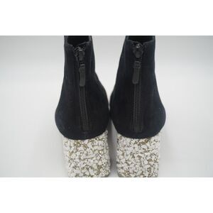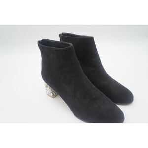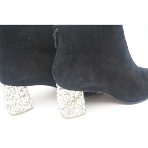 Pre-owned SOPHIA WEBSTER Stella Mid Ankle Boot Black & White Crystal Rock EU 39. Stunning Sophia Webster in soft velvety suede with a back zipper and mid height block heels. White Crystal heel. The perfect black suede ankle boot finished on a dazzling white crystal and rock embellished mid heel