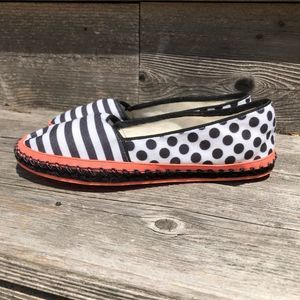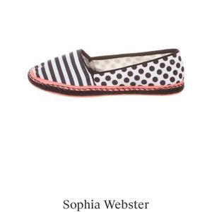 SOPHIA WEBSTER Black White Coral polka dot stripe slip on espadrille fla…