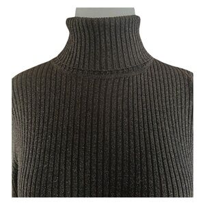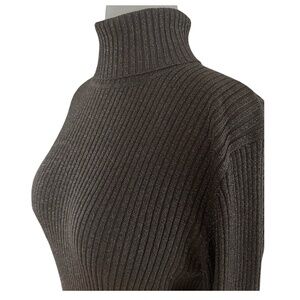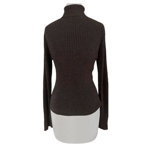 SOPHIE CHANG Vintage Women’s Tiny Knit Silk Turtleneck Size L Brown w/ Gold Yarn