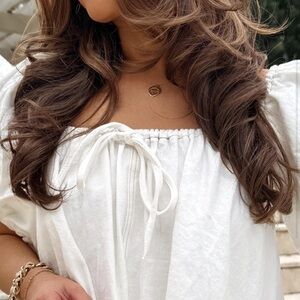 SOPHIE THE LABEL!! White denim dress with tie detail , front pockets. Roomy. Impeccable quality!!! New!! M. Shopyourdarlingboutique