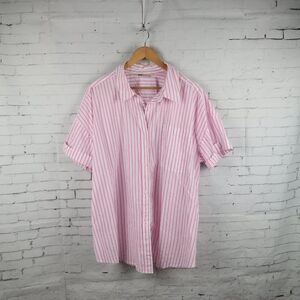 SO PINK & WHITE STRIPE SHORT SLEEVE BUTTON DOWN COTTON TOP SIZE 2X