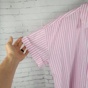 PINK & WHITE STRIPE SHORT SLEEVE BUTTON DOWN COTTON TOP SIZE 2X WITH FRONT LEFT POCKET BY SO PRE OWNED NO FLAWS LIKE NEW CONDITION
