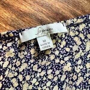 SOPRANO Cream and Blue Flutter Sheer Blouse with Ruffled Sleeves | Size Medium