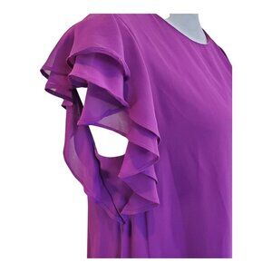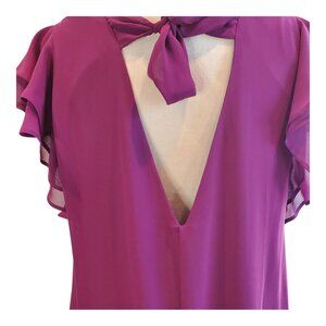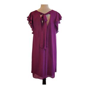 SOPRANO SZ L Purple Flowy Ruffed Cap Sleeve Open-back w/Tie Back Chiffon Dress