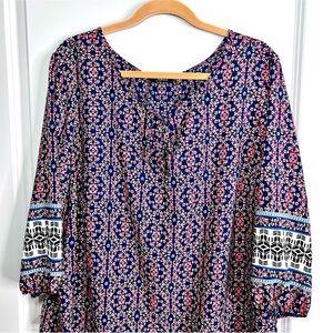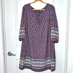 Soprano Floral and Geometric Printed Boho Pullover Dress or Swim Cover Up