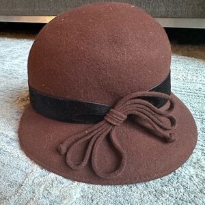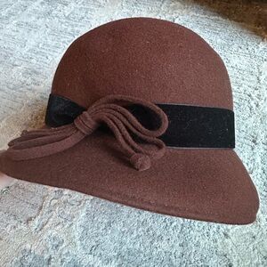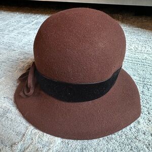 SOPRATTUTTO CAPPELLI ITALIAN ACCESSORIES PURE WOOL FELT HAT BROWN BLACK RIBBON