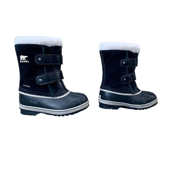 SOREL 1964 Pac Snow Boots Kids 10 27 Faux Fur Black Waterproof Winter Boot Suede