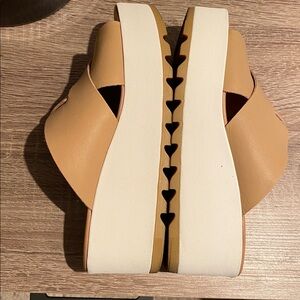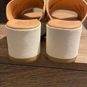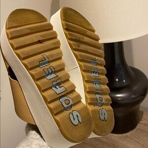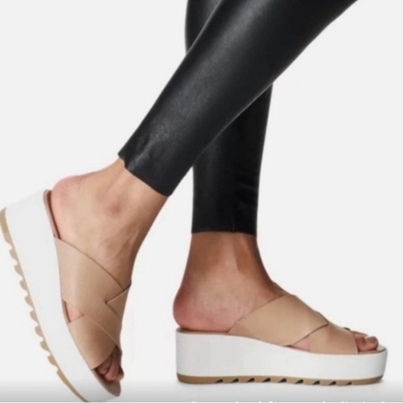 Size 7/5 Sorel Cameron flat form mule in beige Cushioned footbed for comfort. Great shape . Smoke free home .