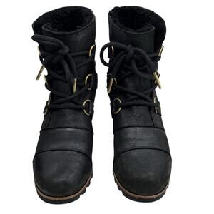 SOREL Addington Shearling Boots SZ 9 Women’s Black Leather Waterproof Lace Up