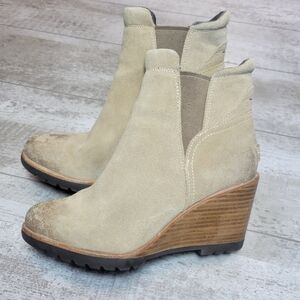 SOREL After Hours Chelsea Tan Wedge Ankle Suede Boot women’s 7.5