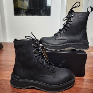 SOREL Black Leather Hi-Line Lace Combat Boot 6.5 NIB