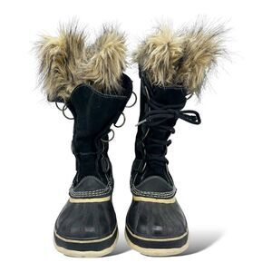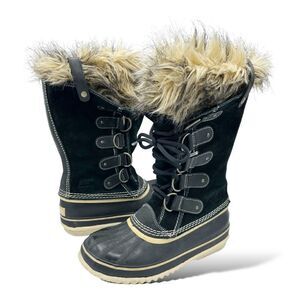 SOREL Black Suede JOAN OF ARTIC Faux Fur Trimmed Snow Boot Sz 8