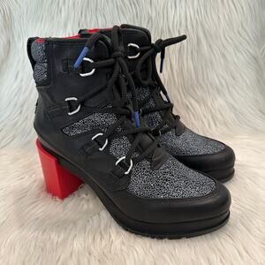 SOREL Blake Lace Shatter Boots Leather Chunky Block Heel Waterproof Black