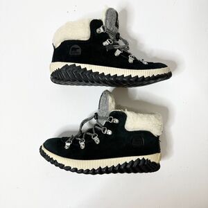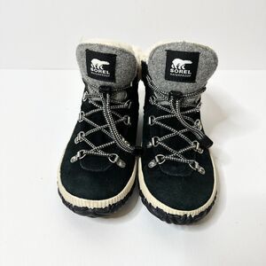 SOREL Boots Women 5 M Black Suede Shearling Rubber Sole Out N About Ankle NEW