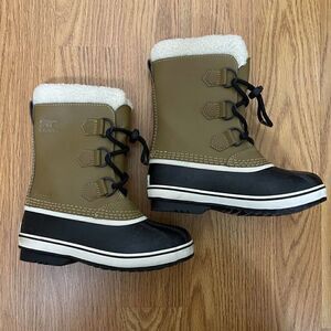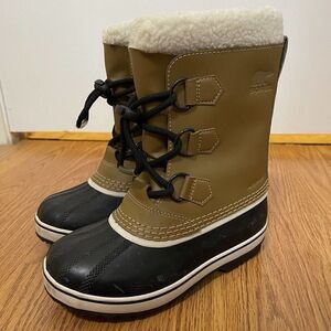 SOREL Caribou yoot pac Winter waterproof sherpa line lace up brown boots unisex youth 1