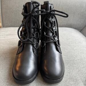 SOREL Cate Lace Women's Black Leather Waterproof D-ring Rain Booties Sz 8.5