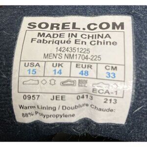 Sorel Men's Duck Boots Cheyanne Waterproof Lace WP Winter Elk / Black, Size 15