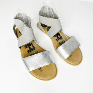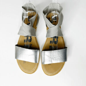 SOREL Ella Sandals silver Elastic Strappy Flats Gray Leather Open Toe Womens 10