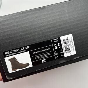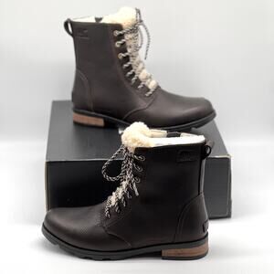 SOREL Emelie Short Lace Cozy Boot Womens 8.5 Blackened Brown Waterproof NEW