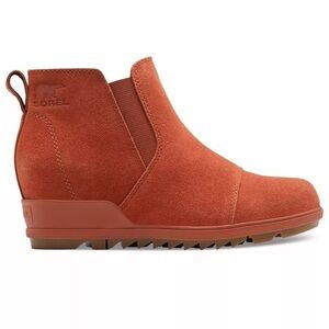 New with tags. Sorel Evie Pul-On Warp Red Orange Gum Suede Wedge Bootie - size 9.5. Box is not included.