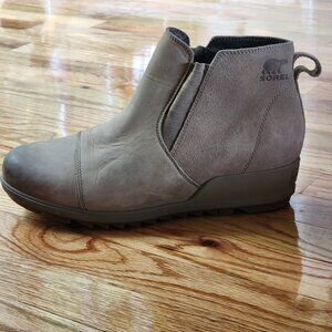 SOREL Evie Women's Leather Chelsea Ankle Boot Wedge Bootie Gray Fall Winter Pull on Casual Work School