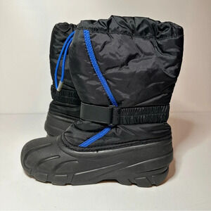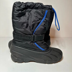 SOREL "FLURRY" SNOW BOOTS KIDA SIZE 4 BLACK/BLUE (NY1810-010) see pictures for reference